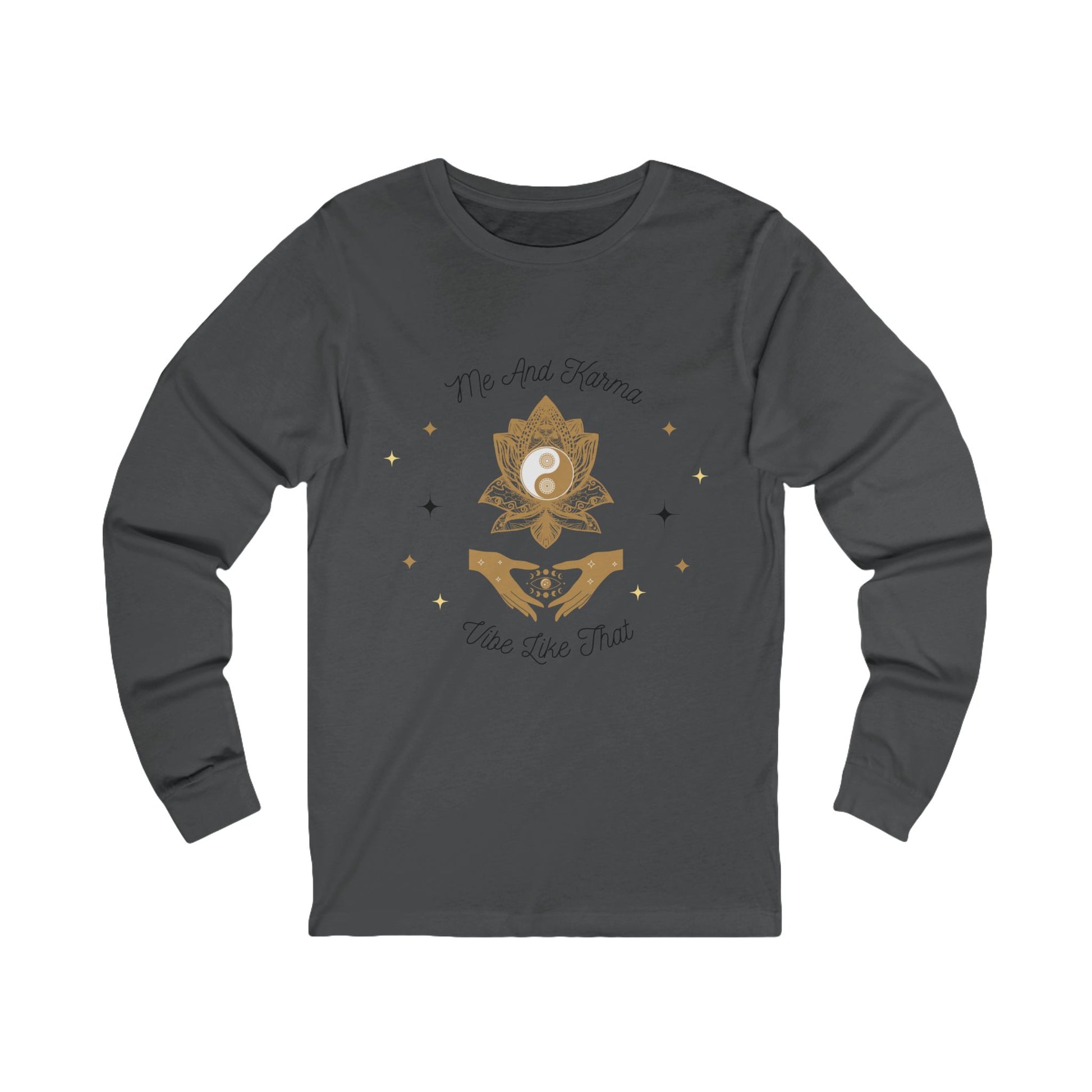 Introducing a versatile Unisex Jersey Long Sleeve Tee that combines comfort with style. This tee is perfect for layering during chilly seasons or wearing on its own for a casual day out. Its soft fabric and relaxed fit make it an ideal choice for anyone looking to elevate their wardrobe. Styled with a unique design that inspires a sense of tranquility and oneness, this tee is relevant for yoga enthusiasts or anyone who enjoys expressing their spiritual side. Perfect for gifting during holidays such as Christmas, birthdays, or special celebrations like yoga retreats and mindfulness meetings. Create a cozy atmosphere in your everyday life or during special occasions with this beautifully designed tee, an essential staple for every wardrobe.